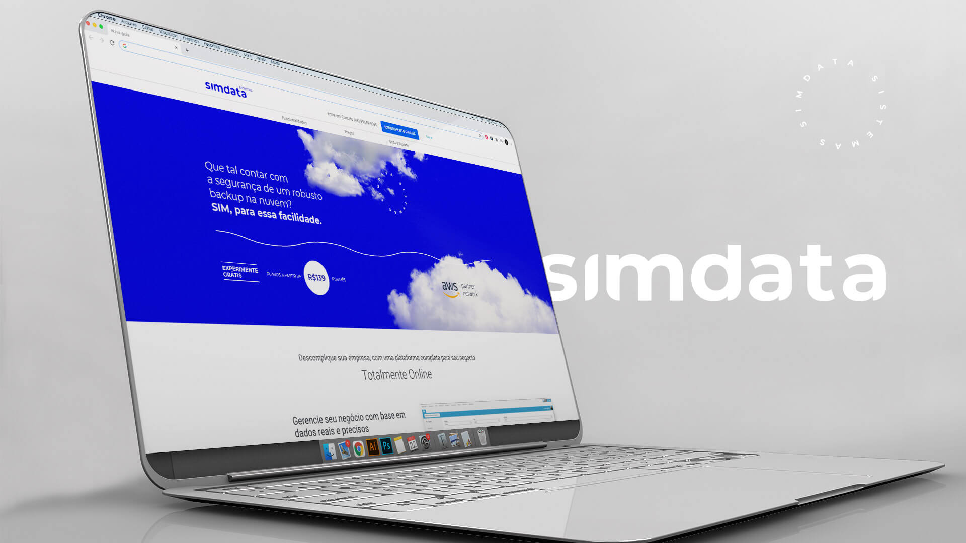 A quebra da expectativa é algo que causa impacto. No caso desta marca, revela um detalhe importantíssimo para o apoio da construção de sua narrativa. A tagline não está abaixo, mas acima do logotipo, colocando o sistema nas alturas, ou seja, nas nuvens.Neste contexto, apontamos na identidade que o sistema gerencial da Simdata opera 100% em nuvem. Obviamente, não espera-se que todos tenham essa percepção de pronto, mas com o tempo este detalhe poderá ser desdobrado em peças que ampliem esta visão.